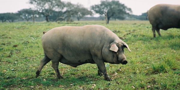 The Puro Alentejano Pigs, being an indigenous breed, are animals extraordinarily well adapted to their natural habitat, the forest, managing to take advantage of the available natural resources and maximizing their yield. The life cycle of the Puro Alentejano iberian hog is essentially carried out in extensive production mode, with water, grass and acorns available. In phases of greater need for food, it is supplemented with cereals and vegetables, essentially. The finishing and fattening phase is carried out during the growing season, resulting in a distinct difference in intramuscular fat and meat quality.